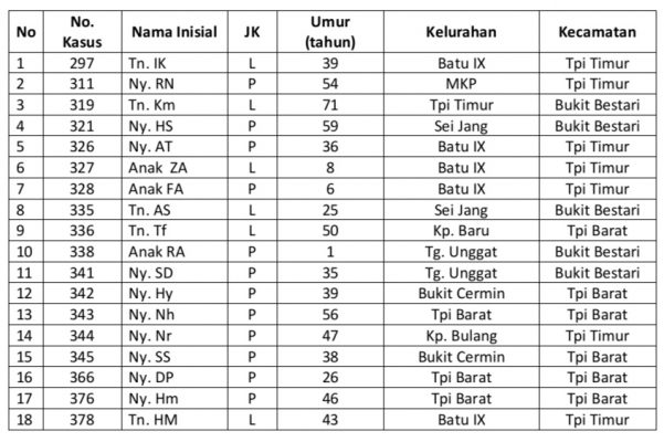 “Sebagaimana hasil pemeriksaan RT-PCR yang diterima dari BTKL PP Batam,” tambah Rahma.