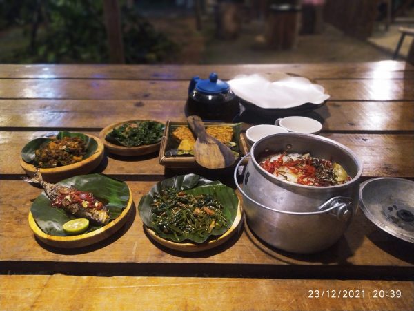 “Nasi Liwet Komplit dengan sambal oncom cabe bendot, karedok leunca, ikan asin peda, cah kangkung terasi di tambah gorengan tempe dan tahu,” ujarnya, Kamis (23/12/2021).
