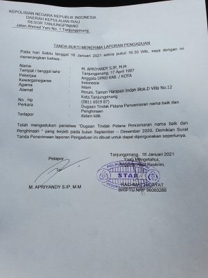 Tanjungpinang, (digitalnews) – Akibat jari lentiknya tak bisa dikontrol, 2 orang wanita dengan inisial W dan PA diadukan oleh salah satu Anggota DPRD Kota Tanjungpinang, Sabtu (16/01/2021).