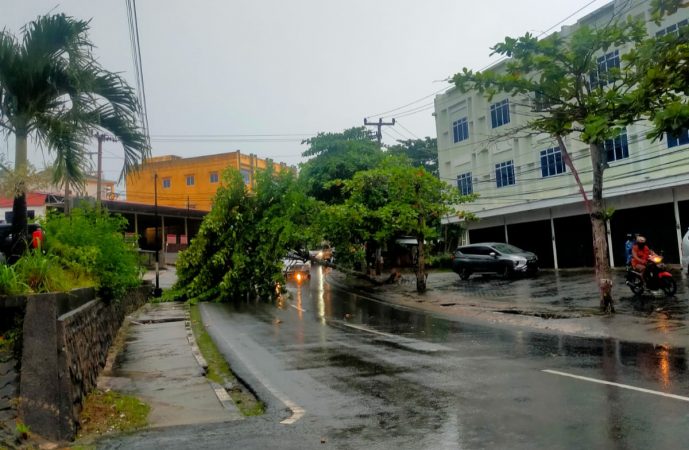 “Pohon besar tumbang di Sukaberenang Bang. Di depan rumah makan Cristal Fatimah,” tulisnya. (*)