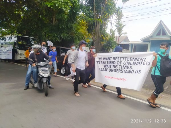 Mereka menuntut agar United Nations High Commissioner for Refugees (UNHCR) dapat segera memberikan kepastian tujuan negara ketiga mereka.