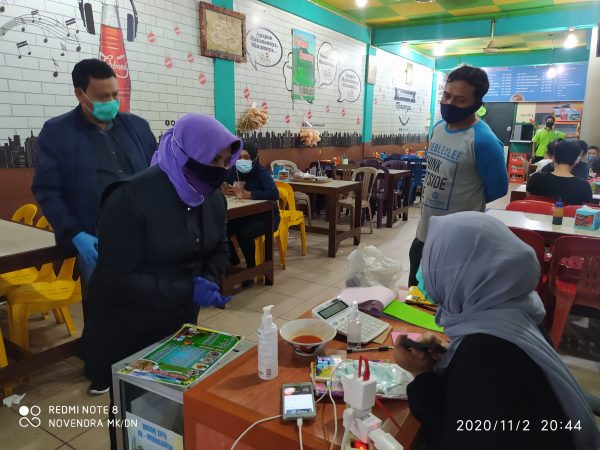 Sambil menyapa para penyedia cafe dan tak lupa mengingatkan untuk pakai masker dan memberikannya secara gratis ke warga masyarakat.